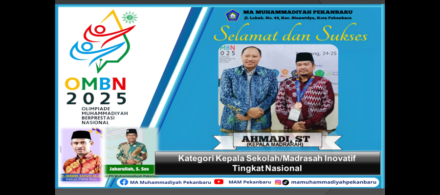 Pekanbaru--MA Muhammadiyah Pekanbaru menyampaikan ucapan selamat dan sukses kepada Bapak Ahmadi, ST selaku Kepala MA Muhammadiyah Pekanbaru atas capaian prestasi mem