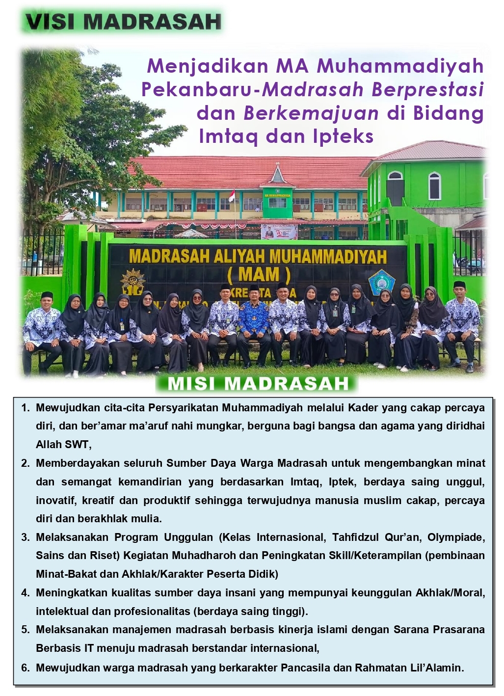 VISI & MISI MADRASAH ALIYAH MUHAMMADIYAH PEKANBARU (MAM)