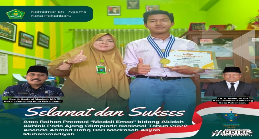 Alhamdulillah,Ananda AHMAD RAFIQ Meraih Medali Emas bidang Akidah Akhlak Pada Ajang Olimpiade Nasional Tahun 2022   = MA MUHAMMADIYAH BERPRESTASI =
