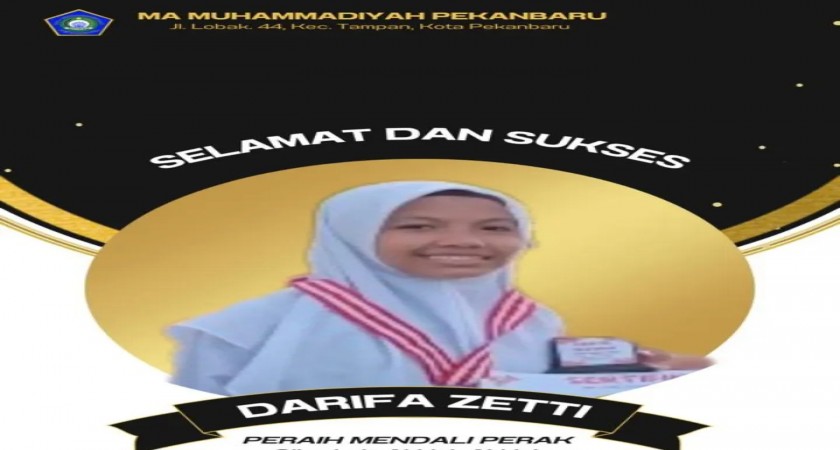Olimpiade dibidang Akuntansi yang diselenggarakan oleh Olimpiade Siswa Prestasi Akademik Nasional (OSPAM) tahun 2023 diikuti oleh salah satu siswi MA Muhammadiyah Pekanbaru atas nama Darifa Zetti (kelas XII IPS) berhasil meraih Medali Perak.